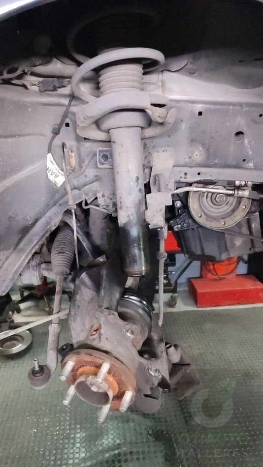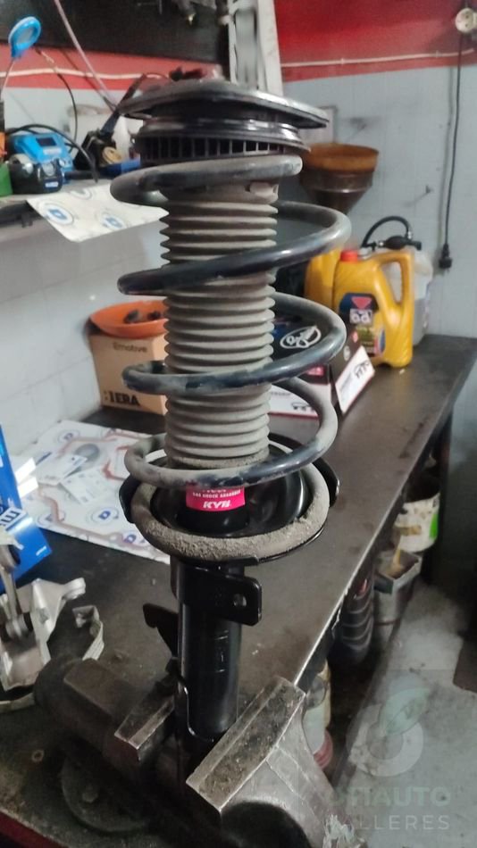 Para dejarlo perfecto le cambiamos los 4 amortiguadores por unos de la marca KYB que tienen una excelente relación calidad-precio. Como se puede apreciar en una de las fotos uno de los delanteros tenía perdida de fluido hidráulico y por ello su efectividad y sobre todo la distancia de frenado se había vuelto peligrosa.